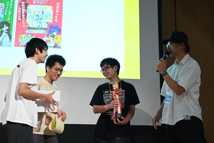 「634Quest」の『リアル「じゃない」脱出ゲームからの脱出』は、審査員からの高い評価により977点(1200点満点)を獲得、見事優勝となりました。審査員であるSCRAP代表の加藤からは、「ずっと忘れられない最高の5秒間があった。ゲームスタートからの道筋がその5秒間のために作られていた。(リアル脱出ゲームを)制作していく中で、”おもしろい”という宝物はどこに埋まっているかわからない。それを見つけられたチームだと思った。」と講評されました。また、優勝の「634Quest」には、協賛の株式会社ブシロードより「カードファイト!! ヴァンガード」が副賞として贈られました。