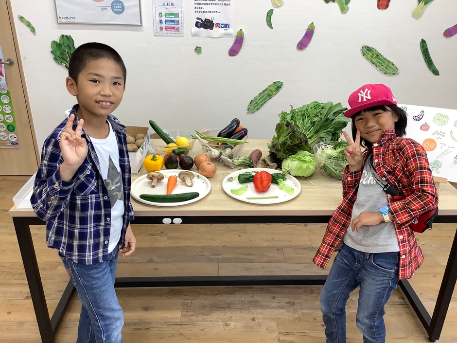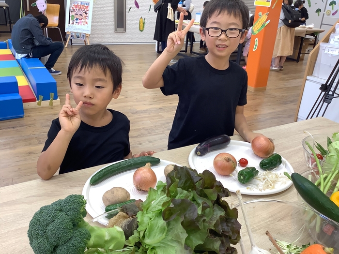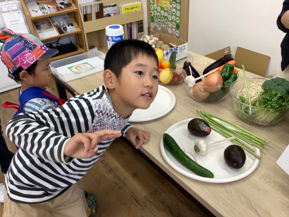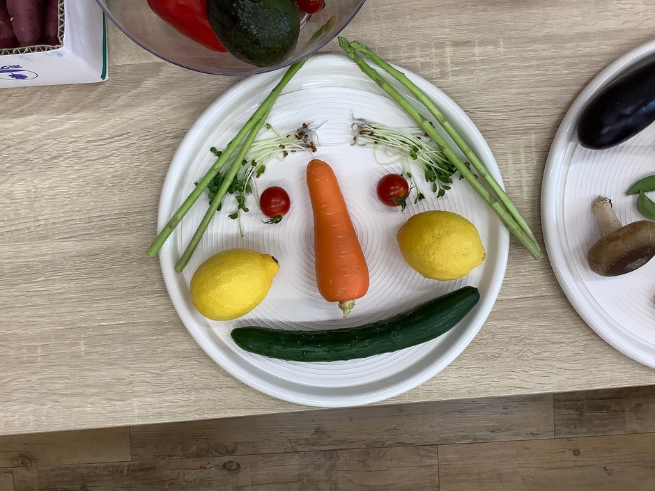 実際に野菜を手に取って大きさや形などを思い思いにユニークな顔を作っていました。