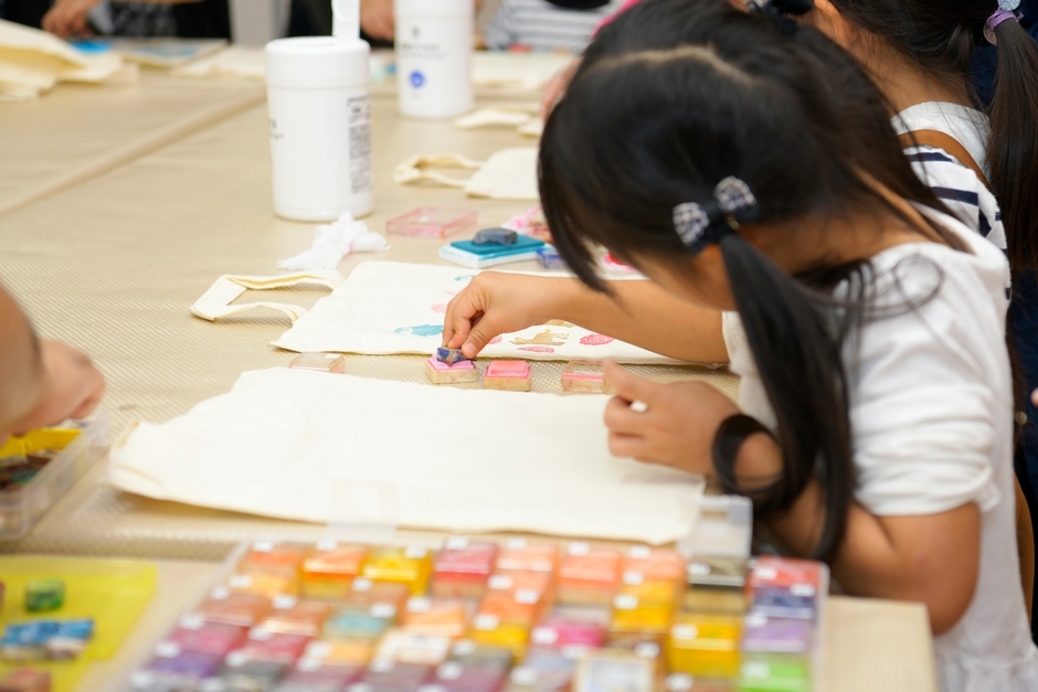 今回はとみこはんは不在でしたが、子供も大人もオリジナルのエコバッグを作り楽しんでいました。