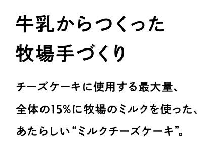 このミルクチーズケーキは、自社で飼育している約500頭の乳牛から絞って直ぐの新鮮なミルクを使用し、牧場内の菓子工房で手づくりされており、チーズケーキに使用できる最大量、全体の15%に牧場のミルクを使った、新感覚のミルクチーズケーキです。既存のフレーバー「プレーン」「ストロベリー」と併せて、ぜひご賞味ください。