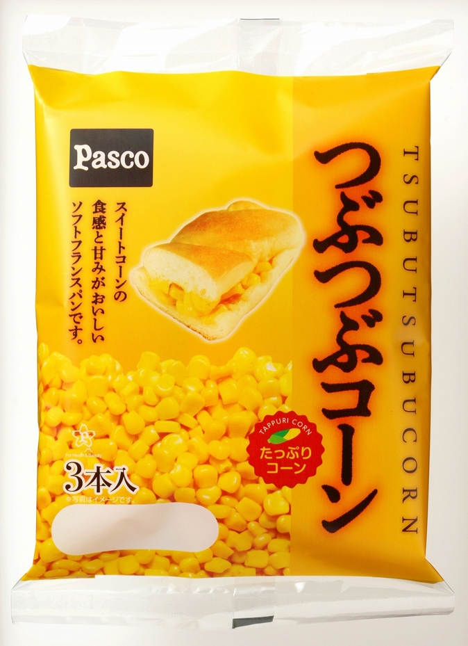 Pasco(敷島製パン株式会社)は、スイートコーンをたっぷりと挟んだスティック状のパン「つぶつぶコーン3本入」を、7月1日より、関東、中部、近畿、中国、四国地区で発売します。