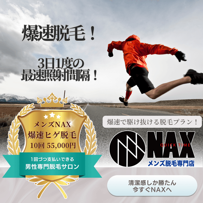 そんな方に朗報! メンズ脱毛サロンNAXの一部店舗では、3日に1回のペースで脱毛照射が可能な『爆速脱毛プラン』 をご用意しました。