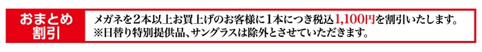 ※サングラスを除きすべてフレーム+レンズのセット価格です。※価格は消費税を含む総額にて表示しております。※いずれも数に限りがございますので売り切れの際はご容赦ください。