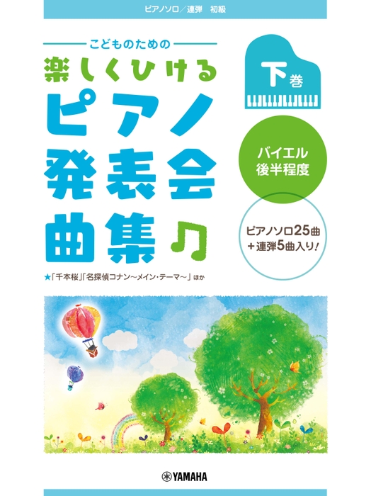 成果を披露する大切なステージ、発表会。いつもより時間をかけて、少しステップアップを目指して練習に取り組まれる生徒さんも多いと思います。長く取り組むからこそ、お気に入りの曲で楽しく練習してもらえるよう、楽しいラインナップを30曲そろえました。発表会の定番曲からジブリ、ディズニー、J-popなど、色々なジャンルの曲から選んで取り組めます。