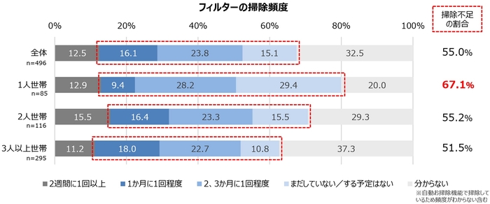 単身世帯の67.1%でエアコンのフィルター掃除が不足している
