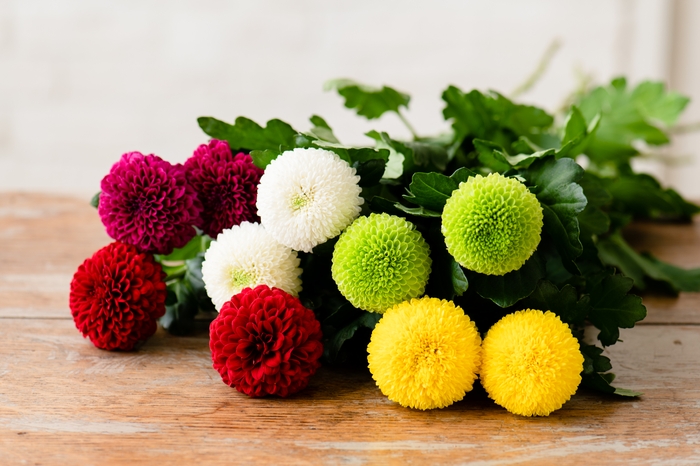 今では1年中出回りのあるマムですが、本来の旬の時期は秋。気温が下がり秋が深まる11月が、最も花色が冴えマムが美しく咲く季節です。出回る品種の種類も増え、選ぶ楽しさも今が一番です。カラフルで可愛らしく、華やかなマムを飾ってみませんか。きっと菊のイメージが変わるはずです。