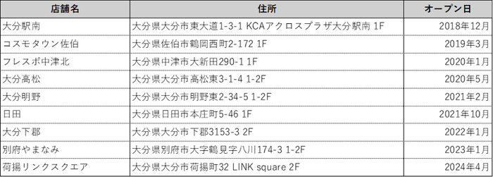 ●大分県のエニタイムフィットネス店舗 ※オープン日順