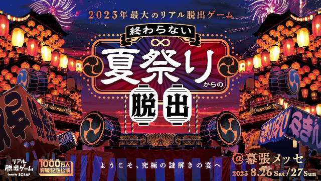 オリジナルグッズの販売は8月26日(土)、27日(日)幕張メッセで開催予定の2023年最大のリアル脱出ゲーム『終わらない夏祭りからの脱出』イベント会場内に設置されるSCRAPギガマーケットを皮切りに、全国のリアル脱出ゲーム店舗にて順次販売開始いたします。
