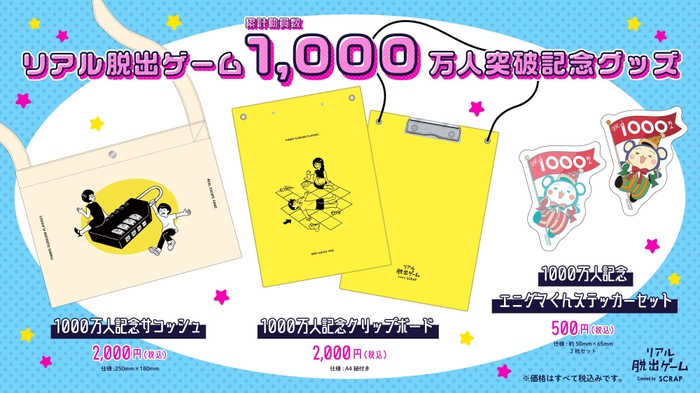 全世界で累計1,090万人以上を動員しているリアル脱出ゲームを企画制作する株式会社SCRAP(本社:東京都渋谷区、代表:加藤隆生)は、リアル脱出ゲームの累計参加者数が1000万人を突破したことを記念し、7月7日を「リアル脱出ゲームの日」に制定しました。そして、累計参加者数1,000万人突破を記念して制作するオリジナルグッズのデザインを発表いたします。