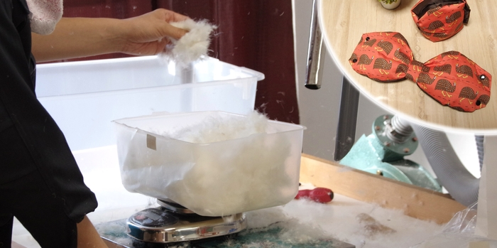 丁寧に洗浄した羽毛は新毛より獣臭が少なく、弾力も増すなど、再生羽毛の利点を理解していただくにはそれ相応の時間が必要でした。