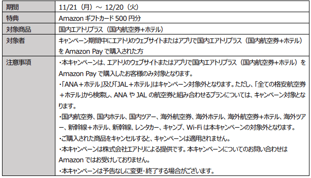 エアトリ国内航空券・国内ホテルに続き、 国内エアトリプラス(国内航空券+ホテル)も、 Amazon Pay 利用者におトクなキャンペーンを実施!! | NEWSCAST