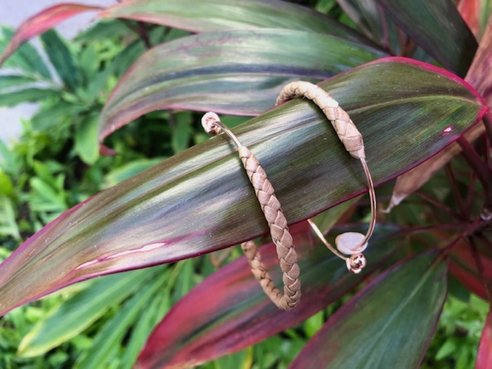ハワイ伝統工芸「ラウハラ編み」で、自分だけのバングルを作るワークショップ。ホノルル・レイデー・コンテストの受賞者Momo氏が伝授します!古くから師の口伝で受け継がれてきた貴重な技術を体験できます。ハワイの風を感じるオリジナルアクセサリーを作ってみませんか?