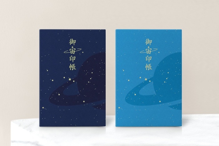 表紙には、デザインされた「御宙印帳」ロゴと、背景には、夏の夜空が描かれています。カラーは濃い青と薄い青の2色です。中は通常の「御朱印帳」と同じく、ジャバラ式24折の両面使える構造です。また、材質、構造自体は、様々な所で御朱印帳として使われている物と同じ材質、構造を採用しています。そのため、スタンプやインクの裏写りなどの心配はいりません。