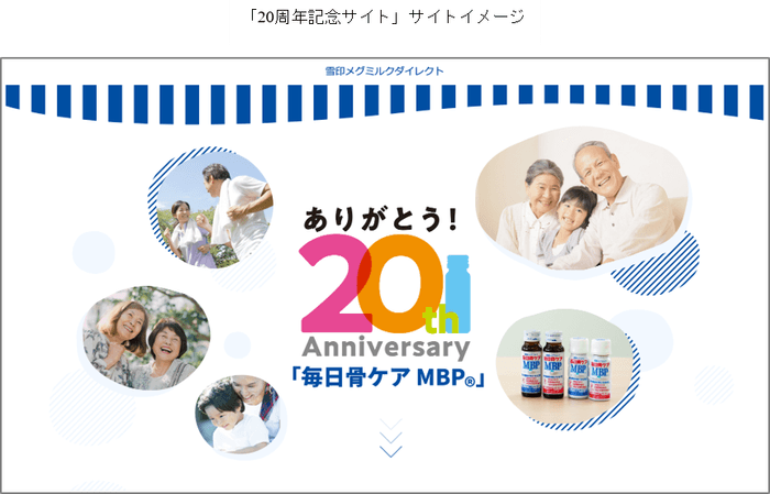 このたび、皆さまにもっとMBP(R)のことを知っていただくために、発売20周年を記念した特別サイト『ありがとう!20th Anniversary 「毎日骨ケア MBP(R)」』を開設いたしました。