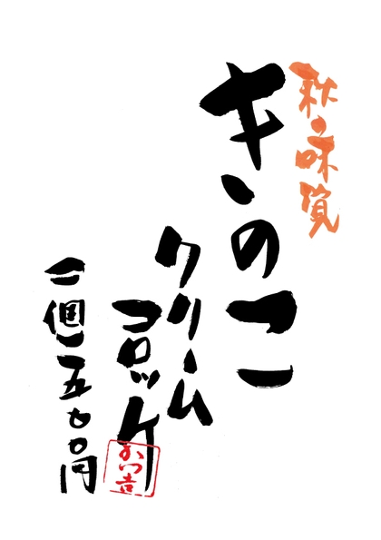 いつもかつ吉をご愛顧いただきありがとうございます。さて今日はかつ吉渋谷店から「秋の商品」のお知らせです。毎年お客様にご好評をいただいております『きのこクリームコロッケ』を今年も[9月9日(木)]より販売させていただきます。10月初旬頃までの初秋限定にて販売の予定です。どうぞ宜しくお願いします。