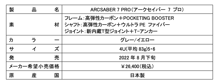 ヨネックス株式会社(代表取締役社長:アリサ ヨネヤマ)は、精密なコントロール性が特徴のバドミントンラケット「ARCSABER(アークセイバー)」シリーズから、中上級者に向けた「ARCSABER 7 PR0」を2022年8月下旬より発売いたします。