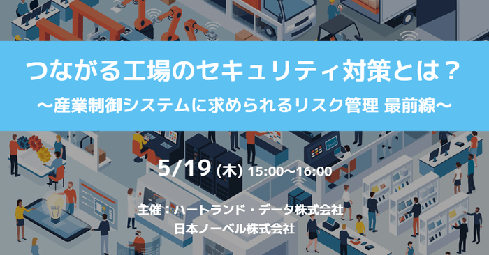 ハートランド・データ株式会社(本社:栃木県足利市)は、2022年5月19日(木)に、無料ウェビナー「つながる工場のセキュリティ対策とは?~産業制御システムに求められるリスク管理 最前線~」を開催いたします。本セミナーでは、 テリロジー社の御木様をゲストにお迎えし、サイバー攻撃から資産を守るためのセキュリティ体制・運用をいかに構築していくかについて、製造業、特に工場に対するサイバー攻撃の最新事例などを交えながらご紹介いただきます。