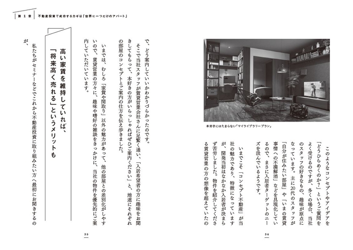 本書では、「コンセプト不動産」のオーナーとして、どんなアパートをつくるかという「夢」の話から、実務的な「お金」の話まで網羅しています。