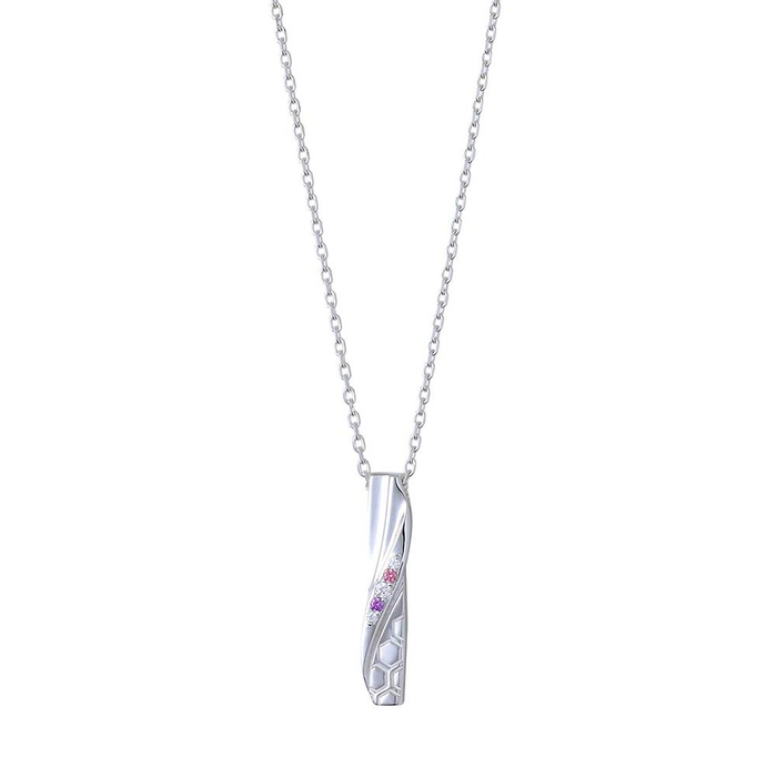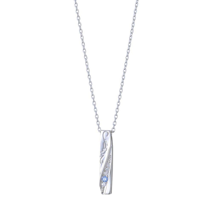 TVアニメ「スケートリーディング☆スターズ」の聖クラヴィス学院をイメージしたネックレスです。作中に登場する衣装の模様をモチーフにしたバータイプのトップにイメージカラーストーンをセットしました。
