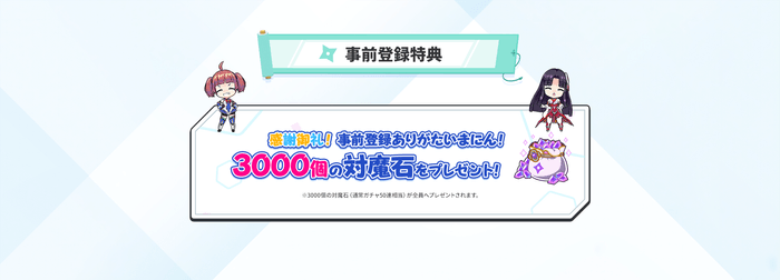 「対魔石3000個」を事前登録者数の人数に関わらず登録して頂いた全ての方にプレゼントさせて頂きます。