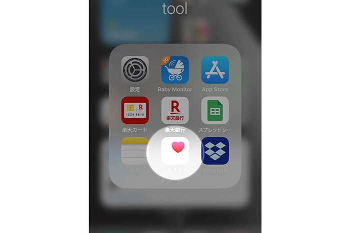 まずはペアリングしているiPhoneで『ヘルスケアアプリ』を開きます。
