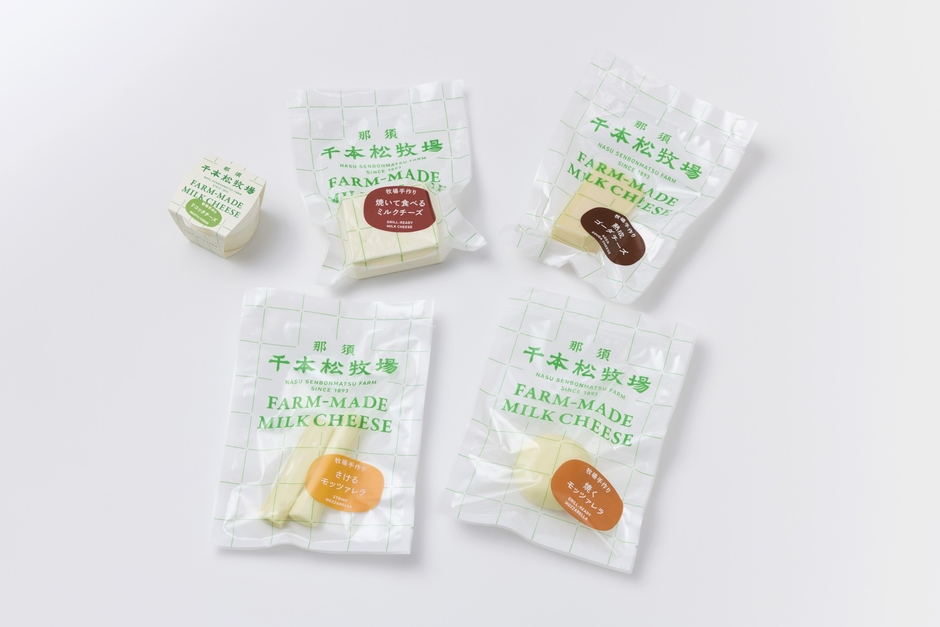 牧場手作り焼いて食べるミルクチーズ、牧場手作りさけるモッツァレラ、 牧場手作り焼くモッツァレラ、牧場手作りはしっこモッツアレラ、牧場手作り熟成ゴーダチーズ、牧場手作りリコッタチーズ