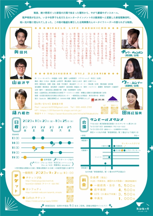 演劇企画集団 Jr.5奥田努、WAHAHA本舗の脚本・演出家としても活躍する山崎洋平らが出演 歌舞伎町に生きた台湾華僑を描く『ミラクルライフ歌舞伎町』 カンフェティでチケット発売