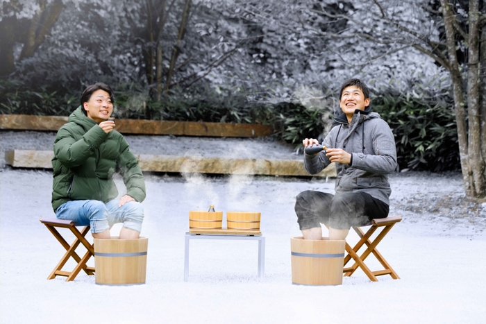 【星野温泉 トンボの湯】信州の地酒とおつまみを足湯に添える温泉サービス 冬季限定「ひとり占め足湯」を提供|期間:2021年11月15日~2022年2月28日