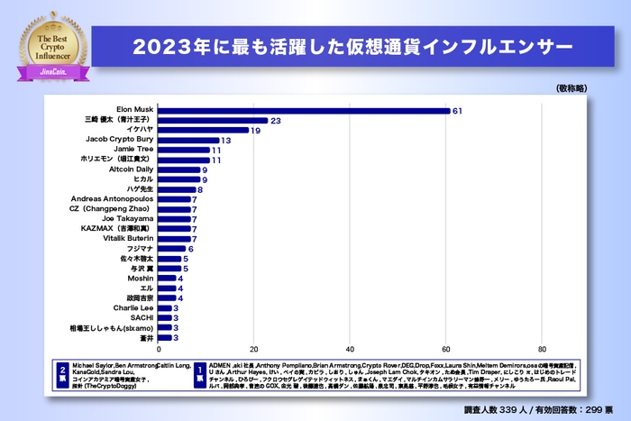 株式会社jaybe(本社:香川県高松市)が運営する暗号資産(仮想通貨 ※以下、「仮想通貨」と称する)メディア「JinaCoin(ジナコイン)」は28日、2023年に活躍した仮想通貨取引所やインフルエンサー、ブロックチェーンゲーム(NFTゲーム)などを称える賞「JinaCoin AWARDS in 2023(ジナコイン・アワード 2023)」を発表しました。