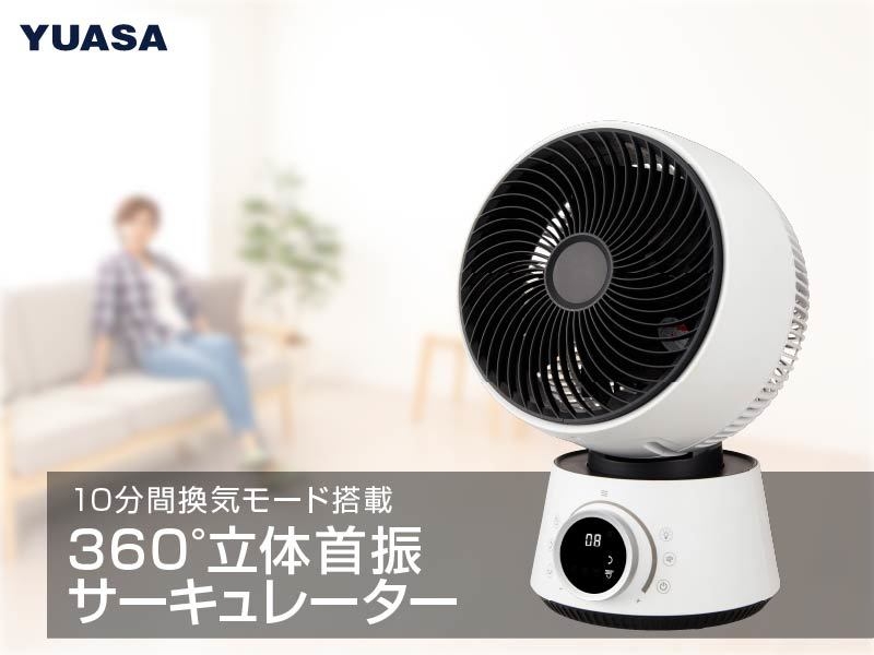 家電製品の開発・輸入・販売を手掛けるユアサプライムス株式会社(本社:東京都中央区、代表取締役社長:安藤 浩)は、超強風での10分間の換気機能を搭載し、360度立体首振りができるDCサーキュレーターを全国の家電量販店、ホームセンター、ユアサプライムスが運営するインターネット家電通販サイト「ユアサプライムス.com( https://www.yuasa-p.com/ )」などで2021年5月下旬より販売します。