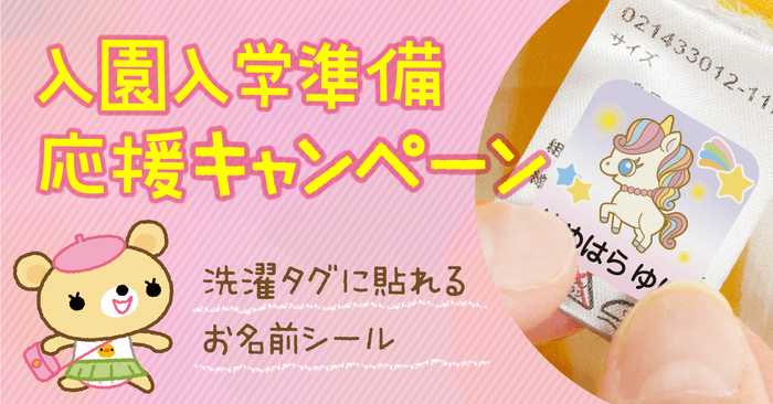 入園準備で便利な、衣類の洗濯タグから食器にまで貼れるお名前シールを【入園・入学準備の応援企画】として割引いたします。