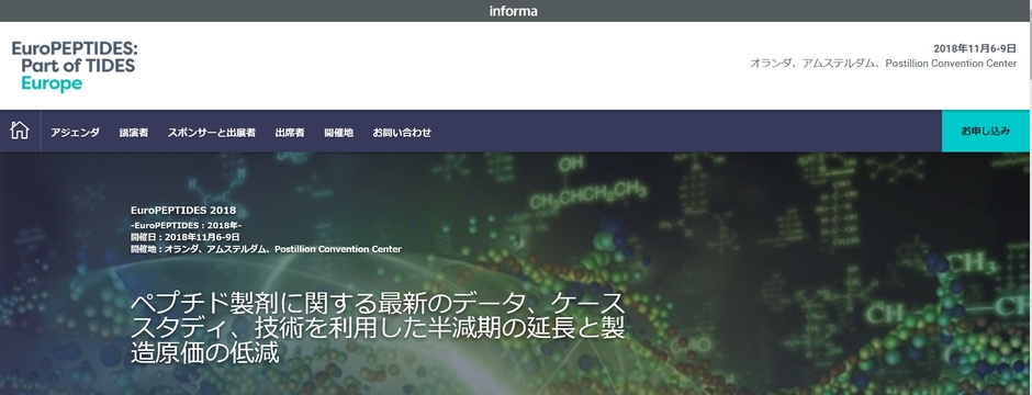 国際学会 「EuroPEPTIDES 2018年」(KNect365 Life Sciences主催)の参加お申込み受付開始