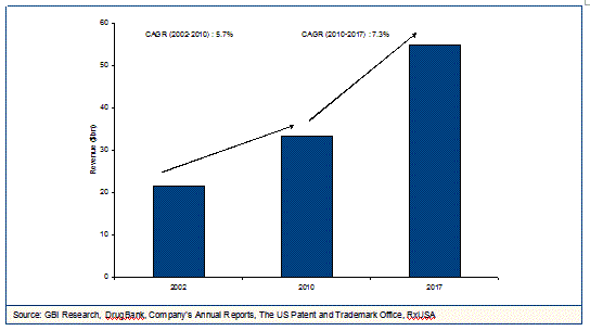 2010年から2017年の間は、CAGR 7.3% で成長し、2017年の市場規模は、548億米ドルに達すると予想されています。