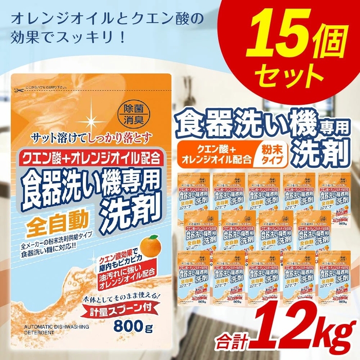 食洗器用 洗剤 合計 12kg 800g×15個 クエン酸 + オレンジオイル配合 食器洗い機 粉末洗剤供給タイプ