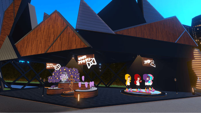 ブラウザ・スマホ・VRに対応しており、複数人が共同制作できる「ワールドクラフト機能」や、3Dアセットやアバター/アイテムを売り買いできる「ストア機能」など、表現したい世界観を構築するためのシステムが揃っています。