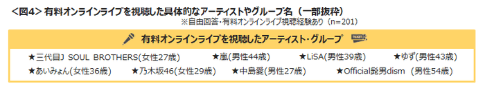 □有料オンラインライブを視聴した具体的なアーティストやグループ