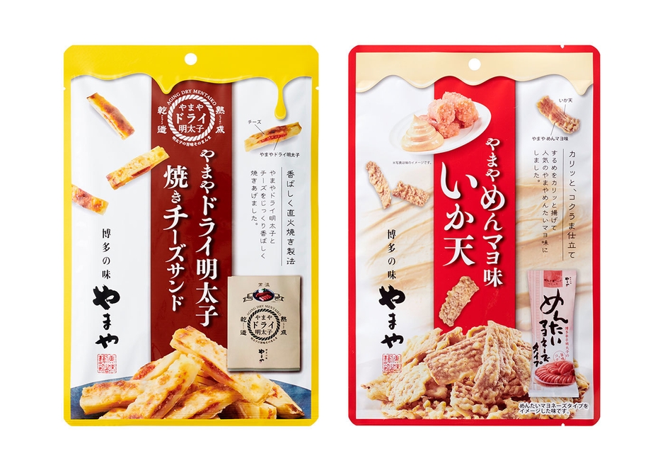 株式会社やまやコミュニケーションズ(本社:福岡市東区、代表取締役社長:山本 正秀)は、2020年12月よりおつまみシリーズ2種「やまやドライ明太子 焼きチーズサンド」「やまやめんマヨ味 いか天」を発売いたします。