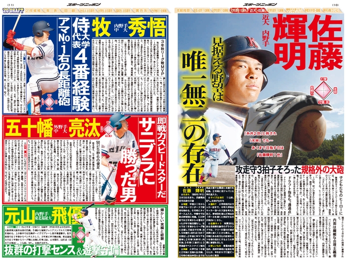 スポニチ タブロイド判新聞「’20年ドラフト特集号」