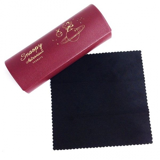 フライングエースのデザインのメガネケースです♪スヌーピーのフェイスがたくさん描かれていて、楽しくなりますね。クロスも同柄で、優しくメガネを守ってくれますよ。