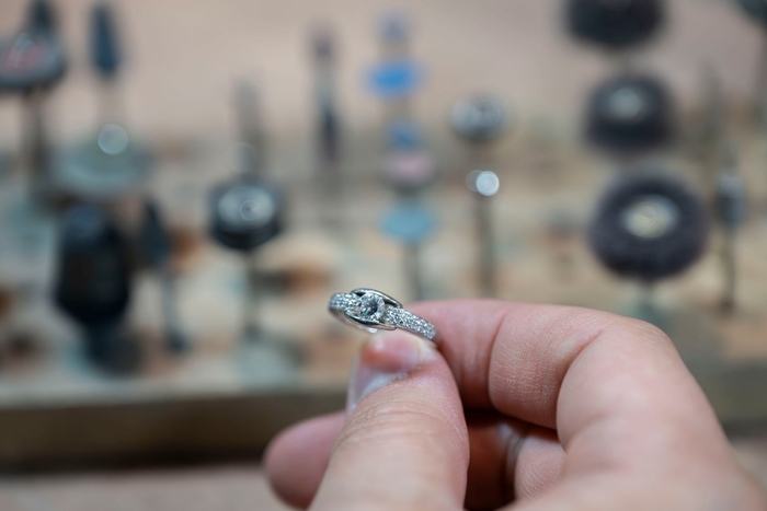 「石留め」は、宝石の緩みや外れに対するご依頼です。大切な石をしっかりと固定し、美しさと安全性を両立させる技術が求められます。お客様の信頼に応える繊細な作業が評価されています。