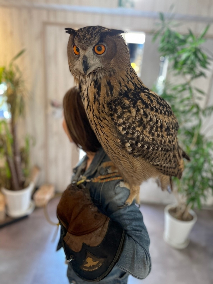 知る人ぞ知るShovelの裏メニュー(猛禽類の肩乗せ体験or腕乗せ&肩乗せ体験)。今までは小型~中型猛禽類だけのサービスでしたが、この度〈大型猛禽類〉も体験可能になりました!!