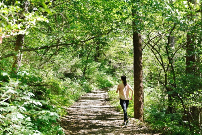 軽い有酸素運動として導入したのが、朝のストレッチ&森のウォーキングです。ストレッチで身体を緩めた後、爽やかな風を感じながら約100ヘク