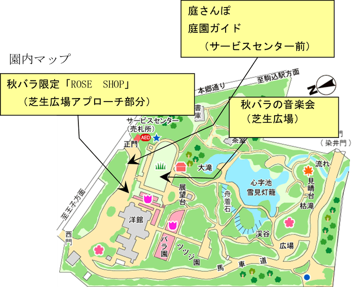 お問い合わせは旧古河庭園サービスセンター(03-3910-0394)までお電話にてお願いいたします。