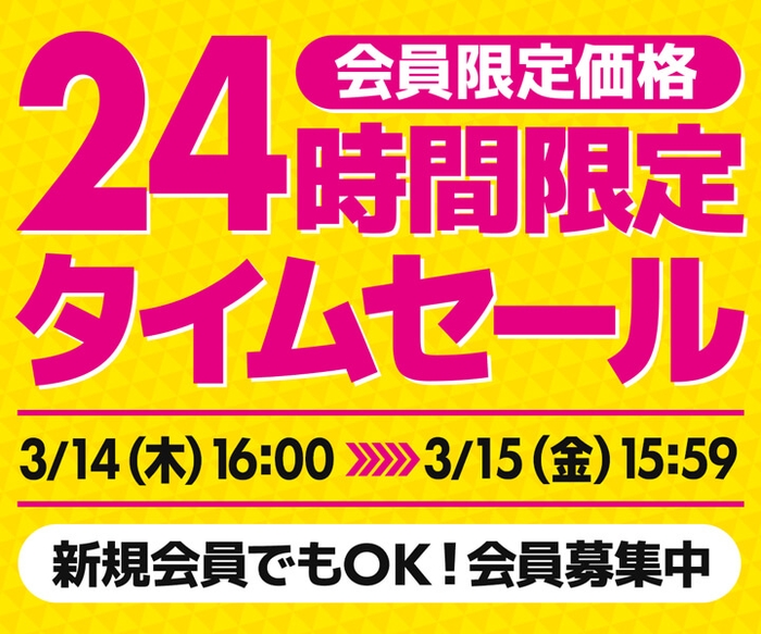 ※会員限定価格 24時間限定タイムセールの実施期間は、3月14日(木)16時00分から3月15日(金)15時59分までとなります。