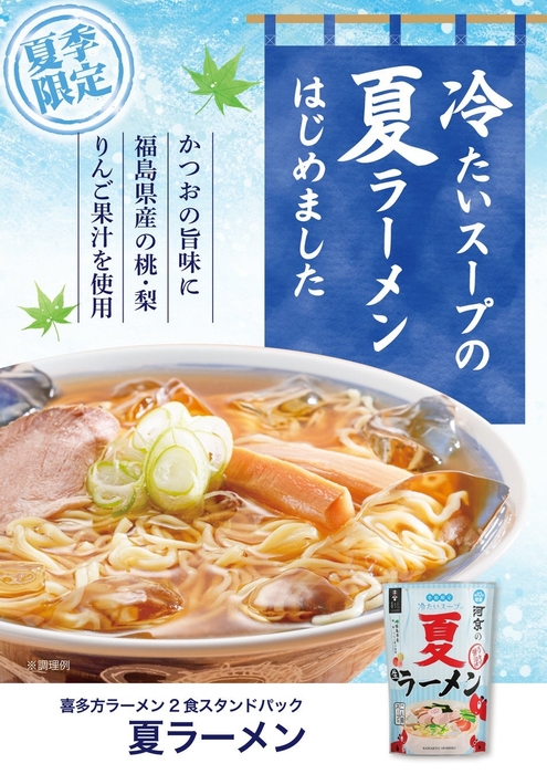 喜多方ラーメンを製造販売をする「株式会社河京(本社:福島県喜多方市、代表取締役社長:佐藤健太郎)」は、2025年4月1日(火)より、「冷たいスープの夏ラーメン」を夏季限定で販売開始いたします。