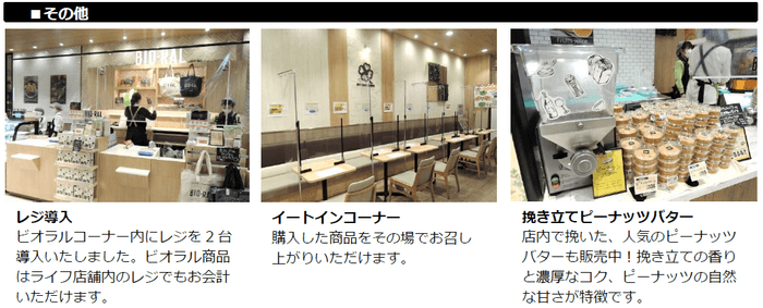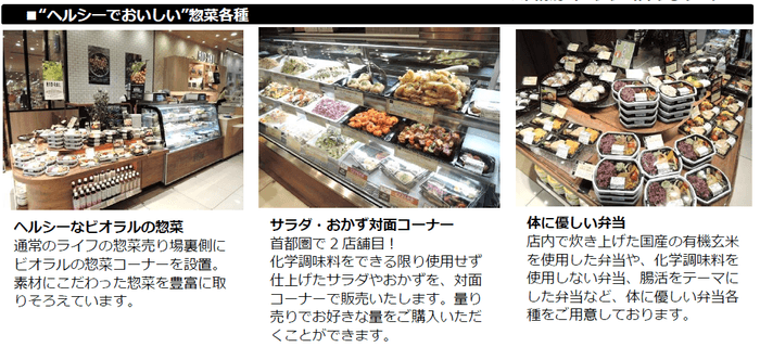 コロナ禍によりさらに高まる健康志向や安全・安心へのニーズにお応えするため、売り場を拡張し「オーガニック・ローカル・ヘルシー・サスティナビリティー」にこだわった商品を展開する大型ビオラルコーナーを導入いたしました。自然の恵みを生かした“オーガニック”商品、埼玉県のおいしい“ローカル”商品、体に優しい“ヘルシー”商品などを豊富に取りそろえ、お客様の心と体の健康と豊かな毎日をお手伝いしてまいります。