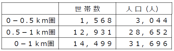 ・店舗から1㎞圏内は単身世帯比率が37.9%、2人世帯比率が26.5%と全体の6割強が少人数世帯です。