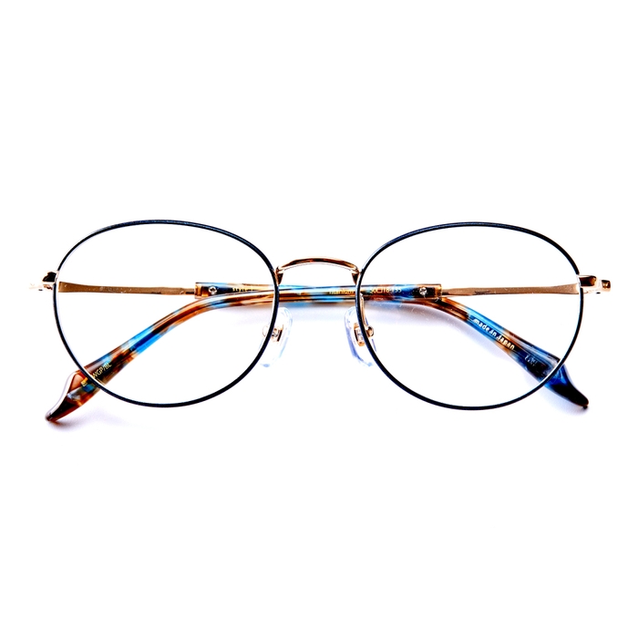 柔らかな色合いのカラーをフレームに用いた大人のメタルフレーム、リムへ施した転写や同系統のバイカラーはコンビネーションにも見える考え抜かれたデザインです。