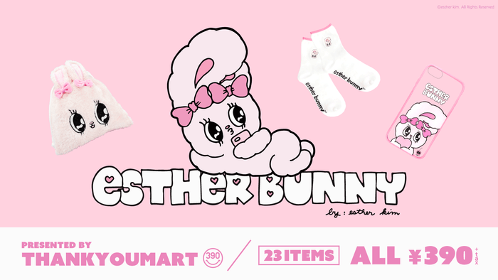 今世界中から注目を浴びているイラストレーター『Esther Kim(エスター・キム)』が手がける、『Esther Bunny(エスターバニー)』がサンキューマートにやって来た!