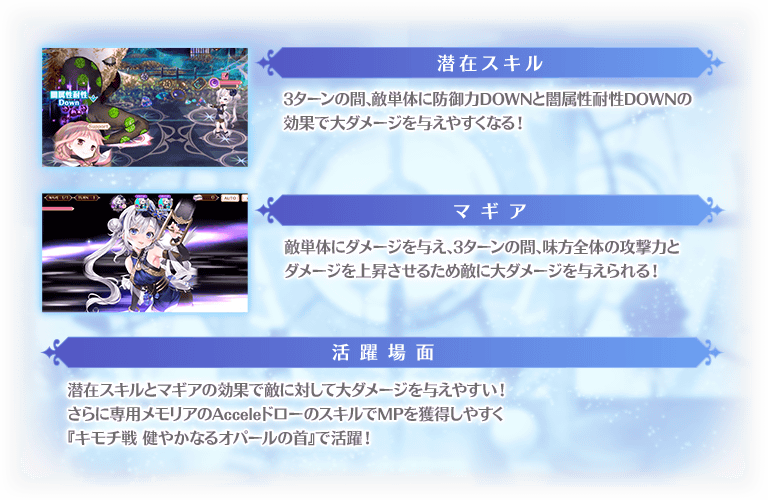 ・魔法少女やメモリアのスキル内容・効果は事前告知の上、変更する場合があります。